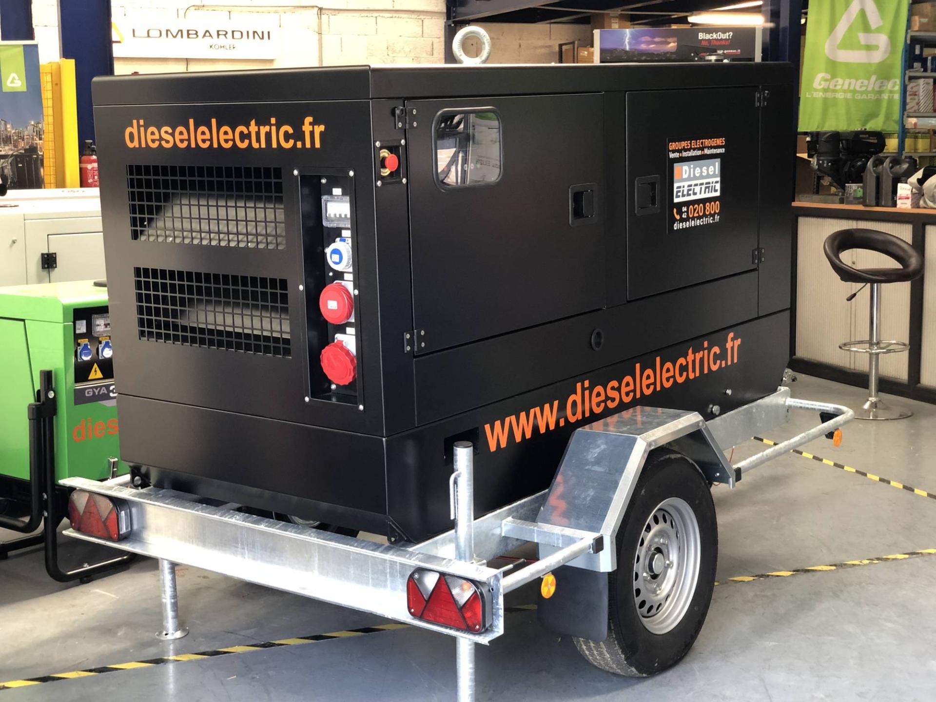 groupe électrogène mobile sur remorque destiné à de multiples besoins (coupures électriques, événementiel, manifestations, etc.).