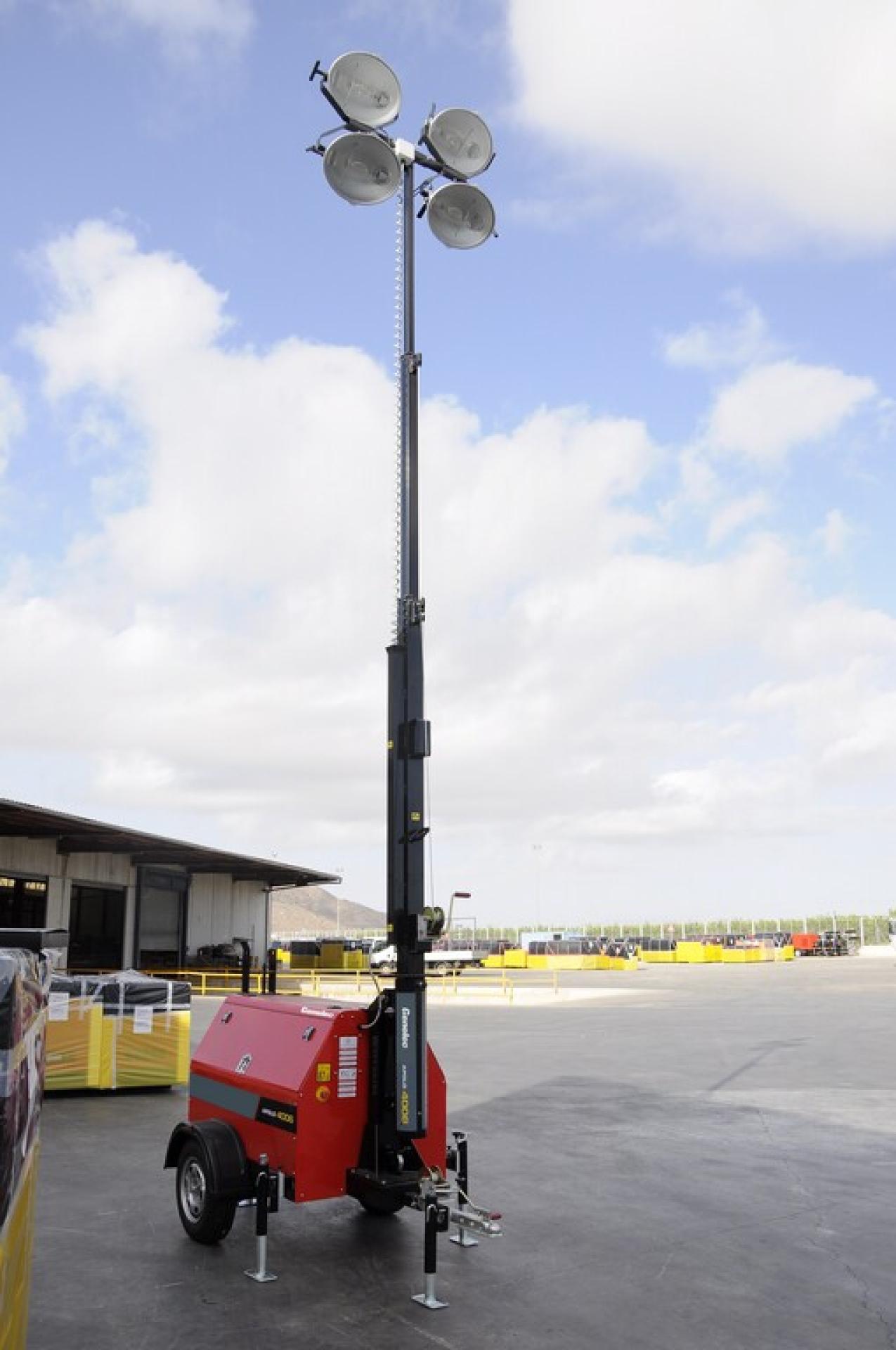 Vente de mat d'éclairage de chantier de marque Genelec avec groupe électrogène.